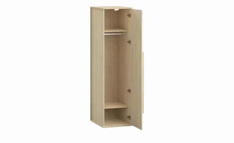 VOX Kleiderschrank OMMMarke Highlights Leise schließende Türen Integrierte LED-Beleuchtung Zusätzliche Einlegeböden separat erhältlich Maße Gesamtbreite: 50,6 cm Gesamthöhe: 186,8 cm Gesamttiefe: 60,3 cm Höhe Füße / Gestell: 1 cm Merkmale Stilrichtung: Modern Zeitlos Griffart: Möbelgriff Mehr zu Ausführung: Belastbarkeit Kleiderstange: ca. 15 kg Anzahl Türen: 1 Stück Anzahl Fächer: 3 Stück Anzahl Böden: 2 Stück Anzahl verstellbare Einlegeböden: 2 Stück Türanschlag: rechts Türart: Drehtüren Anzahl Kleiderstangen: 1 Stück Ausstattung Gestell: Gleiter Ausstattung / Funktion: Soft-Close (Tür) Anzahl Leuchten: 1 Stück Leuchtmittelart: LED-Kaltlicht Beleuchtungszubehör: LED-Beleuchtung Mehr zu Ausstattung / Funktion: Die LED-Beleuchtung schaltet sich beim Öffnen der Tür automatisch ein. Technische Daten Austauschbarkeit der Lichtquelle: Bei diesem Produkt ist das Austauschen der Lichtquelle möglich. Lieferumfang Lieferumfang / mitgeliefertes Zubehör: Batterien LR03 Hinweise max. Belastbarkeit je verstellbarem Einlegeboden bis ca.: 10 kg max. Belastbarkeit je festem Einlegeboden bis ca.: 10 kg Reinigungsart & Pflegehinweise: Flüssigkeiten und Fett möglichst sofort abwischen Reinigung mit feuchtem, nicht tropfnassem Tuch Material & Farbe Material Kleiderstange: Metall Farbe / Dekor Einlegeböden: Eiche (Nachbildung) Farbe / Dekor Griffe: Eiche Farbe / Dekor Front: Eiche (Nachbildung) Farbe / Dekor Kleiderstange: silberfarben Material Korpus: Holzwerkstoff laminiert Material Front: Holzwerkstoff laminiert Material Einlegeböden: Holzwerkstoff laminiert Material Griffe: Massivholz Material Füße / Gestell: Kunststoff Farbe / Dekor Füße/Gestell: Schwarz Farbe / Dekor Korpus: Eiche (Nachbildung) Farbe / Dekor: Eiche (Nachbildung) Eiche Artikelnummer: 40111091 Lieferung ohne Dekoration